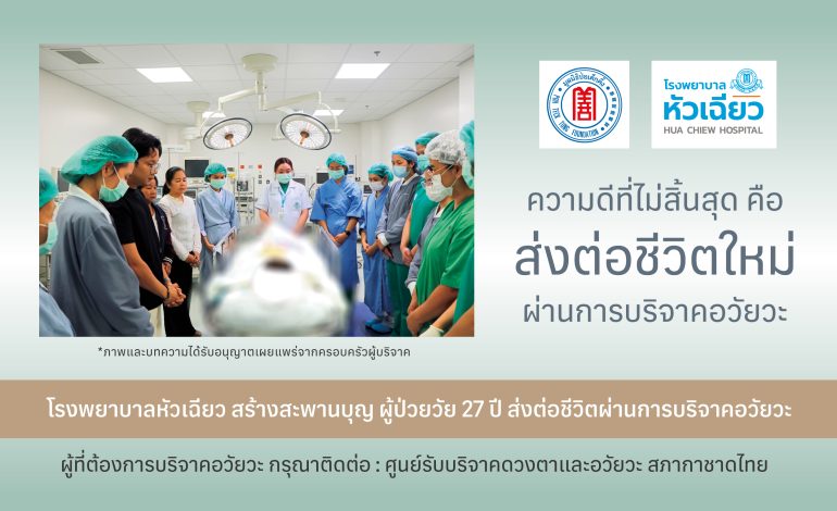 โรงพยาบาลหัวเฉียว สร้างสะพานบุญส่งต่อโอกาสแห่งชีวิต : คุณศรัณยา สิทธิจำเริญคุณ วัย 27 ปี ผู้ป่วยภาวะหลอดเลือดสมองโป่งพองและแตกเฉียบพลัน เข้ารับการรักษาที่โรงพยาบาลหัวเฉียว เมื่อวันที่ 19 พฤศจิกายน 2568 โดยทีมแพทย์และบุคลากรของโรงพยาบาลฯ ได้ให้การรักษาอย่างเต็มความสามารถ จนในที่สุดทีมแพทย์วินิจฉัยว่า ผู้ป่วยอยู่ในภาวะสมองตายและจากไปอย่างสงบ เมื่อวันที่ 21 พฤศจิกายน 2568