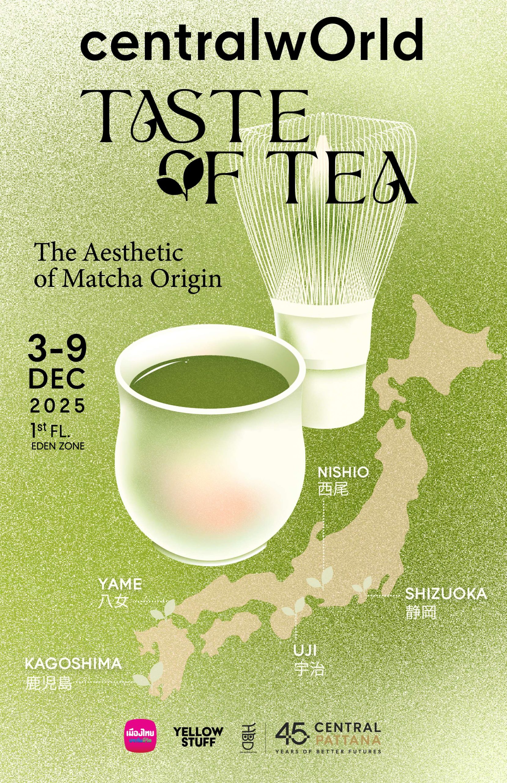 เต็มอิ่มกับเมนูเครื่องดื่มและของหวานจากมัทฉะแท้ ที่มาจากแหล่งผลิต ชื่อดังของญี่ปุ่น ทั้ง อุจิ (Uji) เมืองต้นกำเนิดของมัทฉะ, นิชิโอะ (Nishio) , ชิซูโอกะ (Shizuoka), ยาเมะ (Yame), คาโกชิมะ (Kagoshima) และอีกมากมายหลายภูมิภาค ที่ล้วนมีเอกลักษณ์เฉพาะตัว ในงาน “Taste of Tea: The Aesthetic of Matcha Origin” ที่ศูนย์การค้าเซ็นทรัลเวิลด์ ตั้งแต่ 3 ธ.ค. 68 – 9 ธ.ค. 68