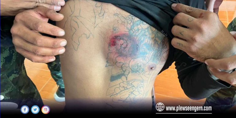 ๒.พลฯ พรชัย จำปาจุม (ร.๖ พัน.๓) ถูกยิงใส่เสื้อเกราะบริเวณหน้าอก มีรอยฟกช้ำ แน่นหน้าอก