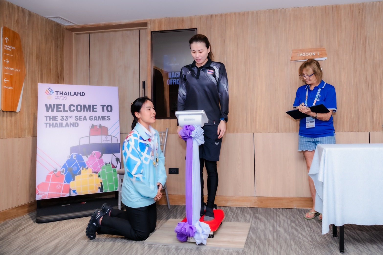 ทรงฝึกซ้อม Official practice race หรือ รอบทดสอบสนาม ร่วมกับนักกีฬาอีกจาก ๔ ชาติได้แก่ เวียดนาม ฟิลิปปินส์ มาเลเซีย และเมียนมา อันเป็นการเตรียมความพร้อมของนักกีฬา และคณะกรรมการ ให้มีความคุ้นเคยกับสนาม ก่อนการแข่งขันจริง ซึ่งจะมีขึ้นระหว่างวันที่ ๑๕-๑๘ ธันวาคม ๒๕๖๘