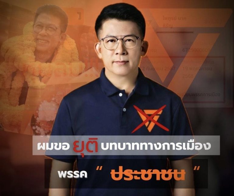15 พฤศจิกายน 2568 นายไพทูรย์ นาคหิรัญ อดีตผู้สมัคร ส.ส. เขต 1 ปราจีนบุรี พรรคก้าวไกล โพสต์ข้อความขอยุติบทบาท กับ ”พรรคประชาชน“