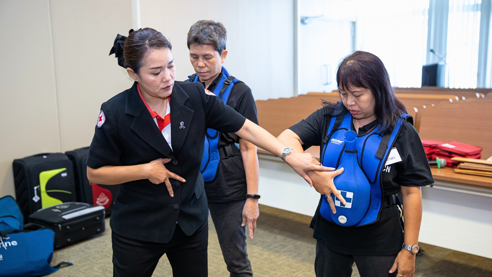 ผศ.ศิริพร พุทธรังษี ผู้อำนวยการศูนย์ฝึกอบรมปฐมพยาบาลและสุขภาพอนามัย สภากาชาดไทย กล่าวว่า “ศูนย์ฝึกอบรมปฐมพยาบาลและสุขภาพอนามัย สภากาชาดไทย เป็นศูนย์ชำนาญการพิเศษของสภากาชาดไทย มีหน้าที่อบรมความรู้ด้านการปฐมพยาบาลและด้านสุขภาพอื่น ๆ ให้กับประชาชนทั่วไป เนื้อหาหลักสูตรที่เรามีการพัฒนาอย่างต่อเนื่องนี้ เราอ้างอิงตามแนวปฏิบัติของสากล และอัปเดตเพื่อผู้เข้าอบรมอยู่เสมอ”