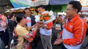 จากนั้น นายณัฐพงษ์และคณะได้เดินเท้าต่อไปยังตลาดจอมพล ซึ่งเป็นตลาดเช้า–เย็นของชาวเมืองขอนแก่น พร้อมด้วย “ทนายป๊อก” นายวีรนันท์ ฮวดศรี ผู้สมัคร สส.ขอนแก่น เขต 1 เบอร์ 3 พรรคประชาชน ร่วมเดินแนะนำตัว ทักทาย และสวัสดีปีใหม่ประชาชนในพื้นที่ โดยได้ร่วมกับผู้สมัคร สส.ทำสัญลักษณ์ “ไทยไม่เทา ไทยเท่ากัน ไทยทันโลก” สร้างสีสันและความคึกคักให้กับบรรยากาศการหาเสียง ซึ่งได้รับการตอบรับอย่างดีจากประชาชน หลายคนเข้ามาทักทายและชื่นชมว่า ตัวจริงดูดีกว่าที่เห็นในโทรทัศน์