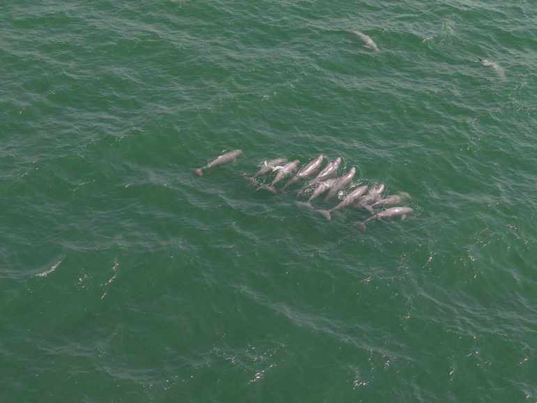 16 มกราคม 2569 ดร.ปิ่นสักก์ สุรัสวดี อธิบดีกรมทรัพยากรทางทะเลและชายฝั่ง เปิดเผยว่า ตามนโยบายของ ดร.รวีวรรณ ภูริเดช ปลัดกระทรวงทรัพยากรธรรมชาติและสิ่งแวดล้อม ที่ให้ความสำคัญกับการอนุรักษ์สัตว์ทะเลหายาก ร่วมกับการบริหารจัดการทรัพยากรทางทะเลอย่างเป็นระบบ กรมฯ จึงได้เร่งเดินหน้าสำรวจสัตว์ทะเลหายากและใกล้สูญพันธุ์ ควบคู่กับการศึกษาประสิทธิภาพของเครื่องส่งสัญญาณเสียง (Pinger) ต่อโลมาและวาฬบริเวณอ่าวไทยตอนบน ครอบคลุมจังหวัดฉะเชิงเทรา และจังหวัดชลบุรี โดยระหว่างวันที่ 12-16 มกราคม 2569 ได้สำรวจสัตว์ทะเลหายากและใกล้สูญพันธุ์โดยวิธีนับตรง พบโลมาอิรวดี (Irrawaddy dolphin: Orcaella brevirostris) จำนวนทั้งสิ้น 35-40 ตัว มีพฤติกรรมรวมกลุ่มหาอาหาร และแสดงพฤติกรรมการสืบพันธุ์ ประมาณ 5-18 ตัว แพร่กระจายอยู่บริเวณปากแม่น้ำบางปะกง ระยะห่างจากฝั่ง 3–5 กิโลเมตร และได้ดำเนินการศึกษาประสิทธิภาพของ Pinger ช่วงคลื่นเสียงความถี่ 50–120 kHz ในโลมาอิรวดี ควบคู่กับการสังเกตการณ์ด้วยอากาศยานไร้คนขับ (Drone) เพื่อเพิ่มประสิทธิภาพในการป้องกันโลมาพลัดหลงเข้าสู่พื้นที่น้ำจืด และลดผลกระทบจากเครื่องมือประมง