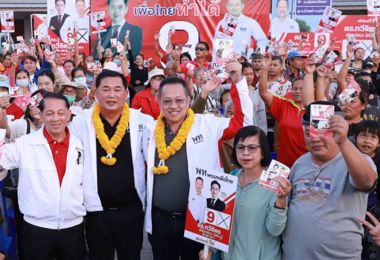 “เมื่อแบ่งเบาภาระหรือหนี้ลดลงแล้ว พี่น้องประชาชนก็จะให้มีรายได้เพิ่มมากขึ้น มีชีวิตที่ดีขึ้นกว่าเดิม ยืนยันว่านโยบายของพรรคที่นำเสนอไปนั้นทำได้แน่นอน ดังที่พี่น้องเคยได้เห็นมาได้ใช้มาแล้ว เช่น 30 บาทรักษาทุกโรค ดังนั้นขอให้พี่น้องมั่นใจขอโอกาสให้พรรคเพื่อไทยเบอร์ 9 เข้าไปบริหาร ผลักดันนโยบายให้กับพี่น้องประชาชน และขอโอกาส ให้นายทวีจิตร พัฒน์ชนะ ผู้สมัคร สส.เขต 1 เบอร์ 9 สระบุรี เข้าสภาฯ เป็นตัวแทนให้พี่น้องสระบุรี”.