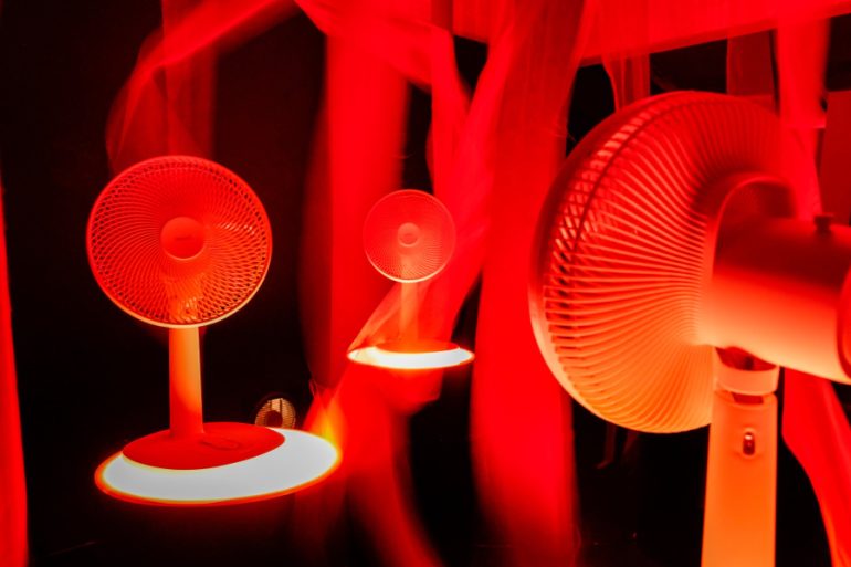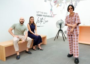 นิทรรศการ “Love Is in the Air” ชวนทุกคนตั้งคำถามว่า “การออกแบบของใช้ในชีวิตประจำวันจะมอบประโยชน์ใช้สอย และสุนทรียภาพทางความรู้สึกในใจของเราไปพร้อมกันได้อย่างไร” โดยได้แรงบันดาลใจจากการเล่นคำในภาษาไทยอย่างคำว่า “แฟน” ซึ่งพ้องเสียงกับ “FAN” ที่หมายถึงพัดลมในภาษาอังกฤษ นิทรรศการครั้งนี้จึงนำเสนอพัดลมที่ไม่ได้เป็นเพียงเครื่องใช้ไฟฟ้า แต่เป็น “FAN” ที่คอยอยู่เคียงข้างเราในทุกช่วงเวลาของชีวิต ซึ่งสะท้อนแนวคิด ของฮาตาริที่ต้องการให้การออกแบบเป็นมากกว่าฟังก์ชัน แต่ยังเป็นเพื่อนร่วมทางทางอารมณ์และความรู้สึก จึงได้ร่วมงานกับ Habits Design Studio สตูดิโอออกแบบสหสาขาวิชาชีพจากประเทศอิตาลี ซึ่งมีความเชี่ยวชาญในการเชื่อมโยง ดีไซน์ ฟังก์ชันการใช้งาน และธรรมชาติ เข้าด้วยกัน