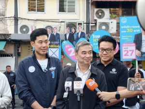 นายอภิสิทธิ์ เปิดเผยว่า หลังจากลงหาเสียงพื้นที่ภาคใต้วันที่ 1-3 กุมภาพันธ์ 2569 ที่ผ่านมา ในวันนี้ (4 กุมภาพันธ์ 2569) ตน นายสกลธี และผู้สมัคร สส.กทม เขต 4 เบอร์ 1 นายพงศกร มาหาเสียงตลาดแสงทิพย์ ย่านพระโขนงต่อเนื่อง ซึ่งตนได้กลับมาในเขตเลือกตั้งของตนเองอีกครั้ง ซึ่งมีความรู้สึกผูกพันกันอยู่แล้ว และที่ผ่านมานายพงศกร เบอร์ 1 ก็ได้เดินหน้าอย่างเต็มที่ในพื้นที่นี้ ซึ่งตนหวังว่านายพงศกรจะได้รับความสนใจจากพี่น้อง ประชาชนในเขตพื้นที่นี้ด้วย
