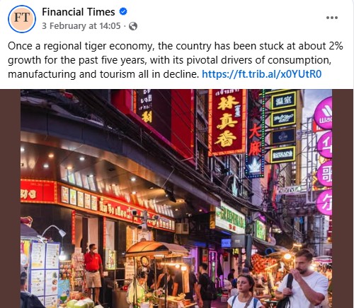 สื่อฝรั่ง The Financial Times พาดหัว ไทยกำลังจะเป็นผู้ป่วยแห่งเอเชีย…