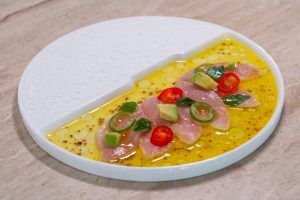 นอกจากความโดดเด่นด้านการตกแต่งซึ่งได้รับการปรับโฉมใหม่อย่างประณีต ห้องอาหารท็อป ออฟ เดอะ รีฟ พร้อมเสิร์ฟอาหารเมดิเตอร์เรเนียนแท้ต้นตำรับโดยเชฟผู้เชี่ยวชาญ ที่คัดเลือกวัตถุดิบสดใหม่จากท้องทะเลและแหล่งวัตถุดิบคุณภาพดีจากทั่วทุกมุมโลก เพื่อรังสรรค์เมนูที่ทั้งกลมกล่อมและมีเอกลักษณ์ ไม่ว่าจะเป็นจานเรียกน้ำย่อยอย่าง Fish Crudo, Citrus & Avocado ปลาฮามาจิแล่อย่างประณีต ราดซอสซิทรัส ซึ่งให้ความสดชื่นพร้อมกลิ่นอายความเผ็ดร้อน เสริมความกลมกล่อมละมุนละไมด้วยอะโวคาโดเนื้อเนียน และ Beef Carpaccio, Rocket & Parmesan เนื้อวัวคาร์ปาชิโอแล่บางสไตล์อิตาเลียน เสิร์ฟเคียงผักร็อกเก็ตสดกรอบและพาร์เมซานชีสชั้นดี เติมเต็มรสชาติอย่างลงตัวด้วยน้ำสลัดรสกลมกล่อม ชูรสชาติอันโดดเด่นของเนื้อวัวคุณภาพดี
