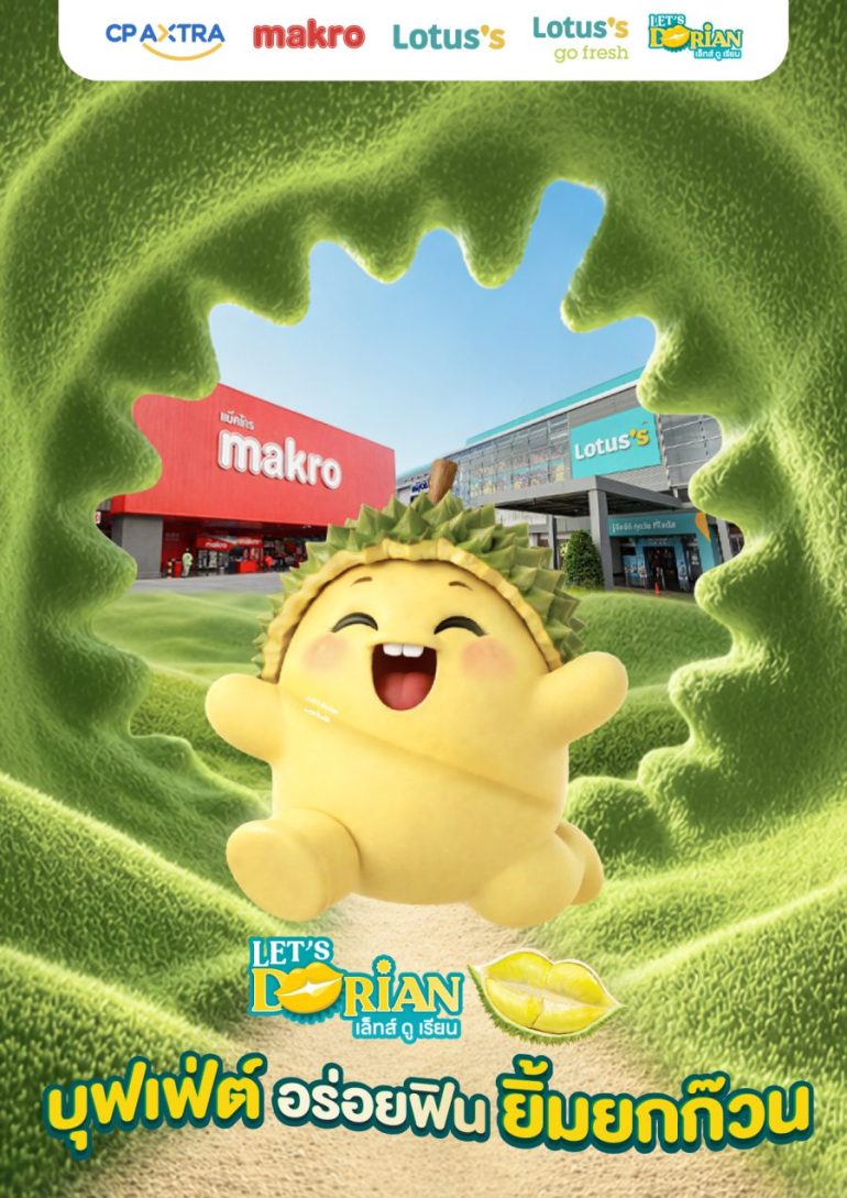 20 เมษายน 2569 – “แม็คโคร–โลตัส” ภายใต้ บริษัท ซีพี แอ็กซ์ตร้า จำกัด (มหาชน) สนับสนุนเกษตกรไทย ร่วมต้อนรับเทศกาลผลไม้ฤดูร้อน จัดงาน “Let’s Dorian อร่อย หวานมัน ไม่ต้องลุ้น” เสิร์ฟบุฟเฟ่ต์ทุเรียนและผลไม้ภาคตะวันออกส่งตรงจากสวนโดยเกษตรกรมาให้เลือกทานแบบไม่อั้น พร้อมบริการ เคาะ เจาะ ชั่ง ปอก รับประกันความอร่อย หวานมันทุกชิ้นแบบไม่ต้องลุ้น เริ่มต้นที่ โลตัส บางนา ระหว่างวันที่ 23-26 เมษายน 2569 ในราคา 599 บาท / 1 คน สามารถร่วมกิจรรมบุฟเฟ่ต์ทุเรียนได้ 1 ชม. พร้อมรับสิทธิ์หมุนฟรีวงล้อลุ้นรางวัลจากโลตัส 1 ครั้ง
