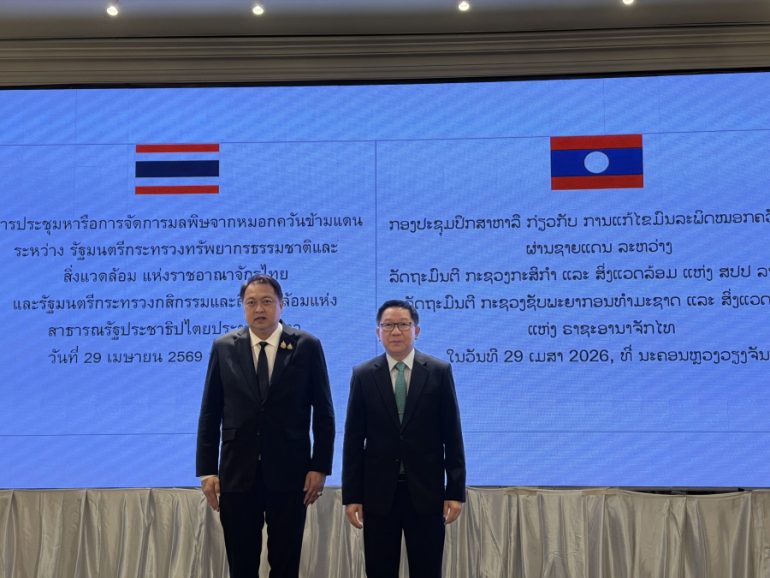 29 เมษายน 2569 เวลา 09.30 น. นายสุชาติ ชมกลิ่น รัฐมนตรีว่าการกระทรวงทรัพยากรธรรมชาติและสิ่งแวดล้อม (รมว.ทส.) พร้อมด้วย ดร.รวีวรรณ ภูริเดช ปลัดกระทรวงทรัพยากรธรรมชาติและสิ่งแวดล้อม นางครองขนิษฐ รักษ์เจริญ เอกอัครราชทูตนครหลวงเวียงจันทร์ พร้อมด้วยคณะผู้บริหาร เดินทางเยือนสาธารณรัฐประชาธิปไตยประชาชนลาว เพื่อหารือร่วมกับดร.ลินคำ ดวงสะหวัน รัฐมนตรีว่าการกระทรวงกสิกรรมและสิ่งแวดล้อม ในประเด็นความร่วมมือด้านการจัดการหมอกควันข้ามแดนและการบริหารจัดการทรัพยากรธรรมชาติอย่างยั่งยืน