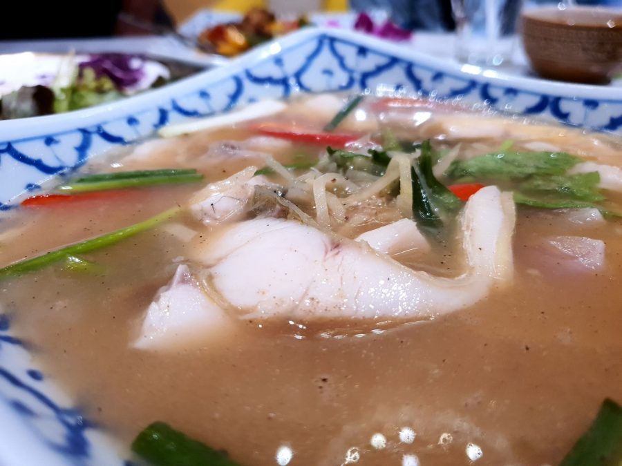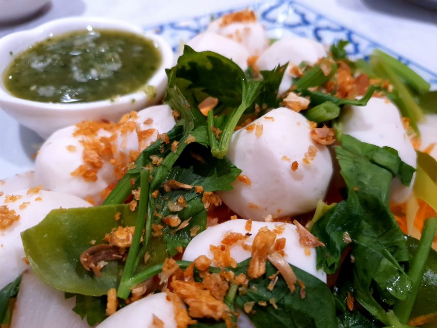 ลูกชิ้นปลาที่นี่จะถูกสั่งตรงจากจังหวัดภูเก็ต เพียงแค่นำมาลวกอย่างเดียว โรยด้วยกระเทียมเจียวและใบขึ้นฉ่ายที่มีประโยชน์ต่อร่างกายมาก ก็จะได้รสชาติของลูกชิ้นที่หอมนุ่มนวลใส่ปากเคี้ยวจะอร่อยลิ้นเป็นอย่างยิ่ง ถ้าได้จิ้มน้ำจิ้มซีฟู้ดสักนิดก็จะอร่อยมากขึ้น