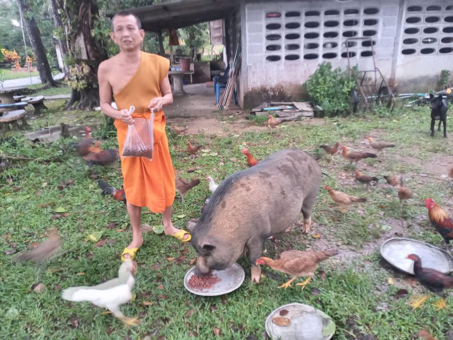 หมูขี้อ้อน!! จ้าวอู๊ดๆ ชาวบ้านถวายวัดเลี้ยงจนอ้วนหนักกว่า 100 กก. กลายเป็นขวัญใจพระและญาติโยมที่ปฎิบัติธรรม