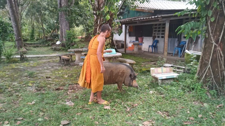เมื่อวันที่ 10 กันยายน 2565 ผู้สื่อข่าวจังหวัดพังงารายงานว่า ได้รับแจ้งที่วัดเฉลิมพระเกียรติบางมรวน ม.5 ต.บางม่วง อ.ตะกั่วป่า จ.พังงา มีหมูแสนรู้ที่ชาวบ้านนำมาถวายวัดเลี้ยงดู