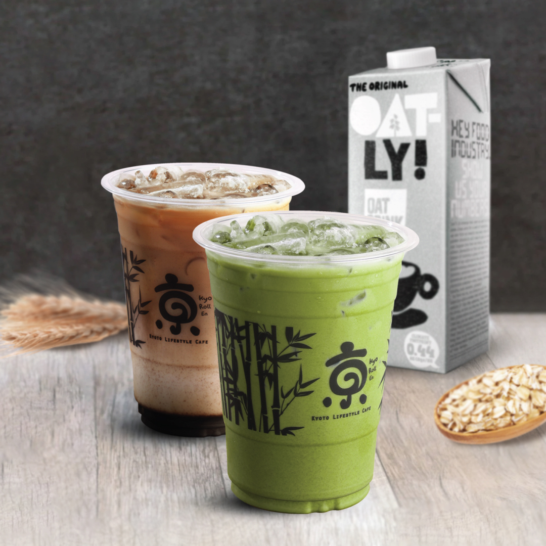 พลาดไม่ได้กับเครื่องดื่มใหม่ 2 รสชาติเติมความสดชื่นผสานความละมุนจาก ‘OATLY’ แบรนด์น้ำนมข้าวโอ๊ตคุณภาพเยี่ยม ดื่มง่าย ไขมันต่ำ ไม่มีโคเลสเตอรอล กับ Iced Kuromitsu Oat Milk Latte กาแฟลาเต้เย็นใส่คุโระมิทสึ และ Matcha Oat Milk Latte อูจิมัทฉะผสมนมข้าวโอ๊ต หอมมันกลมกล่อม