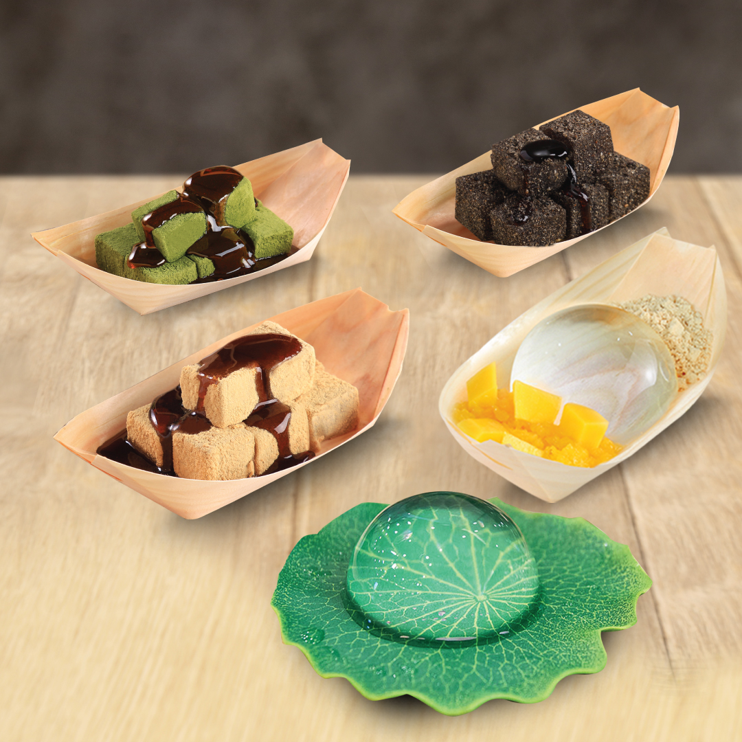 Warabi Mochi ขนมทานเล่นยอดนิยมทำจากรากของต้นวาราบิ เนื้อนุ่มหนึบ แคลอรี่ต่ำ ช่วยให้อิ่มท้องได้และพลังงาน เลือกอร่อยได้ 3 รสชาติ ‘รสคินาโกะ’ จากผงถั่วเหลืองญี่ปุ่นคั่ว ‘รสมัทฉะ’ เข้มข้นอูจิมัทฉะแท้ 100% จากเกียวโต และ ‘รสงาดำ’ สุดหอม เพิ่มความอร่อยหอมหวานจากคุโระมิทสึ ทำจากน้ำตาลทรายแดงโอกินาว่า