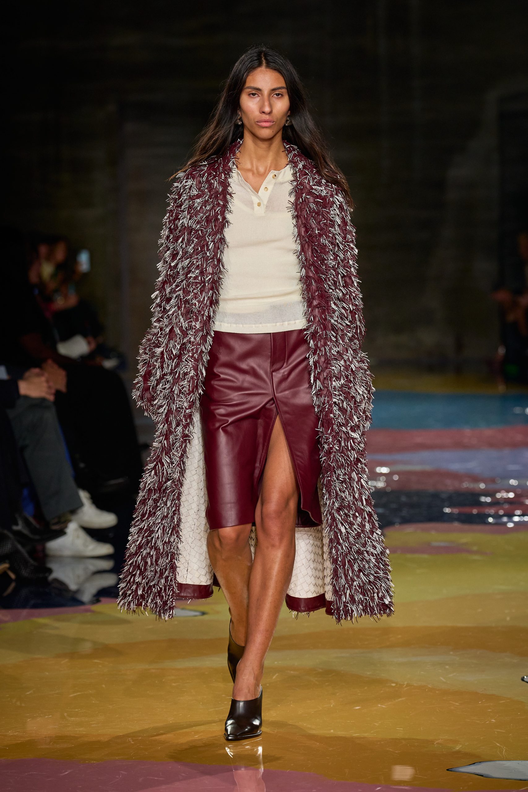 แปลงโฉมจากสาวที่เต็มไปด้วยเสน่ห์และน่าหลงใหลตามแบบฉบับอิตาเลียนในชุดตารางลายหมากรุก (plaid) และกางเกงผ้าชิโน (chinos) (ชูการพิมพ์ลายนูบัคอย่างวิจิตร) ผู้มาพร้อมกับกระเป๋าสะพายข้างที่โฉบเฉี่ยวพร้อมเฉิดฉาย (การตีความเทคนิคการสาน Intreccio ตามความหมายดั้งเดิมคือการทอถักแห่งความแตกต่างและหลุดจากกรอบเกณฑ์เดิม ซึ่งไหลเวียนอยู่ในบริบทที่แปรเปลี่ยนไป) สู่สาวในชุดเฟอร์ขนสัตว์ (เป็นอีกครั้งที่ใช้เทคนิคการพิมพ์ลาย