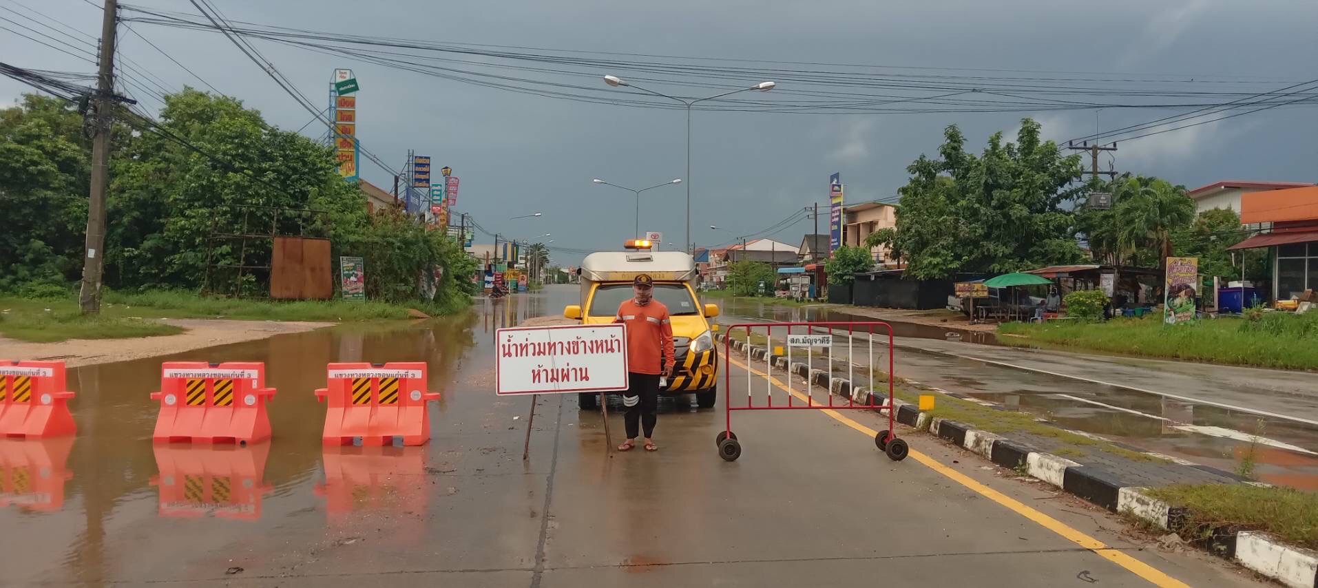 - ทางหลวงหมายเลข 226 ตอน ห้วยขะยุง – วารินชำราบ ช่วง กม. ที่ 319+600 – 320+200 ระดับน้ำ 60 เซนติเมตร ให้ใช้เส้นทางเลี่ยงท้องถิ่นแทน