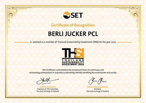 บริษัท เบอร์ลี่ ยุคเกอร์ จำกัด (มหาชน) หรือ บีเจซี ได้เป็นหนึ่งในบริษัทจดทะเบียนที่มีรายชื่ออยู่ในหุ้นยั่งยืน Thailand Sustainability Investment (THSI) อย่างต่อเนื่อง เป็นปีที่ 3 ประจำปี 2565 นับตั้งแต่ ปี 2563 ในกลุ่มอุตสาหกรรมประเภท ‘กลุ่มบริการ’ (Services) จากตลาดหลักทรัพย์แห่งประเทศไทย