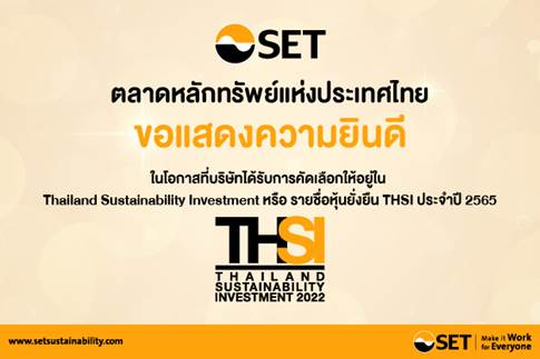 BJC ติดอันดับหุ้นยั่งยืน Thailand Sustainability Investment (THSI) ประจำปี 2565 ต่อเนื่องปีที่ 3 จากการประกาศของตลาดหลักทรัพย์แห่งประเทศไทย