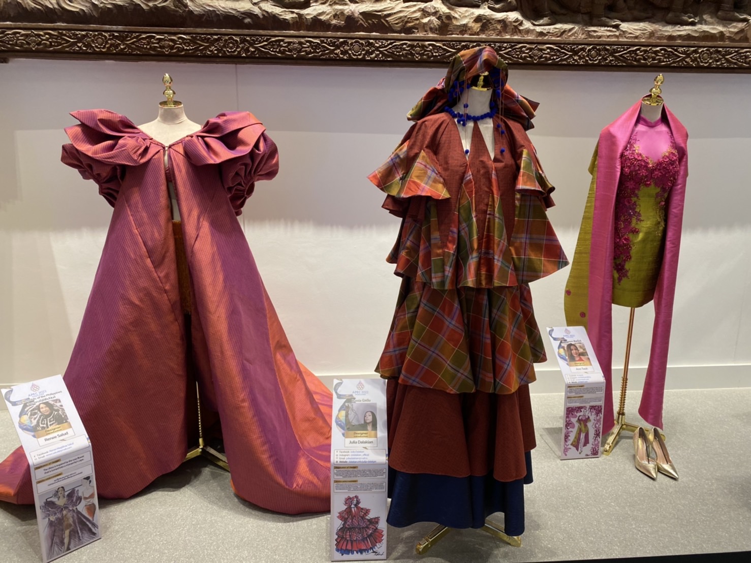 ผ่านการออกแบบโดยดีไซเนอร์จากเขตเศรษฐกิจเอเปกทั้ง 21 เขต ได้แก่ ประเทศไทย , สหรัฐอเมริกา , ญี่ปุ่น, นิวซีแลนด์, เวียดนาม , สิงคโปร์, ฟิลิปปินส์ , เปรู , ปาปัวนิวกินี , เม็กซิโก , มาเลเซีย , เกาหลีใต้ , อินโดนีเซีย , ฮ่องกง , ไต้หวัน , จีน , ชิลี , แคนาดา , บรูไน , รัสเซีย และออสเตรเลีย