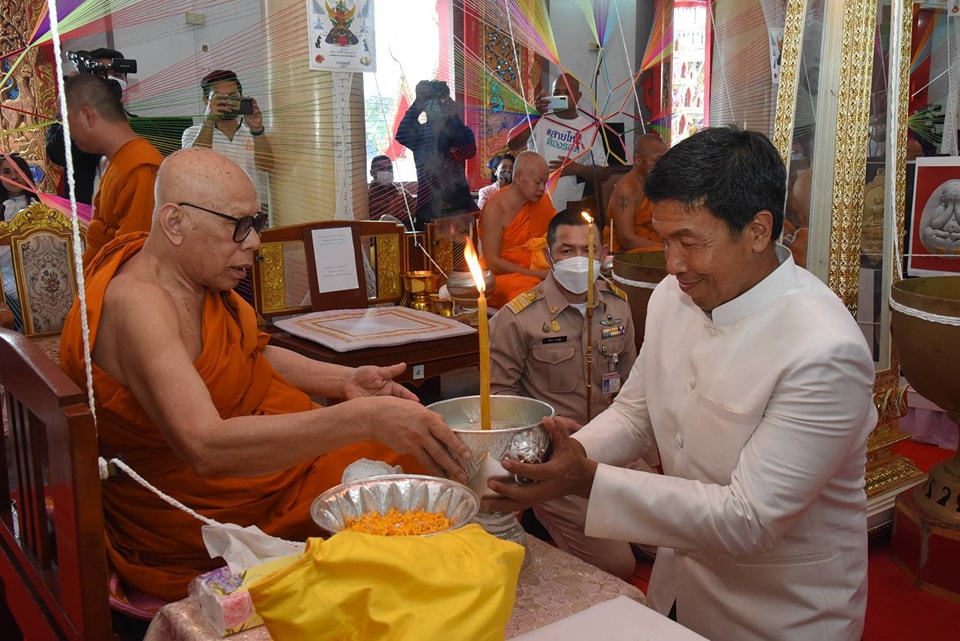 พร้อมด้วย พระครูสรภัญญ์พิสุทธิ์ (รุ่งแสง ฐิติญาโณ) เจ้าอาวาสวัดเกาะสุวรรณาราม นางวันทนีย์ วัฒนะ รองปลัดกรุงเทพมหานคร ดร.รัตติกาล แก้วเกิดมี สมาชิกสภากรุงเทพมหานครเขตสายไหม นายสมบัติ กนกทิพย์วรรณ ผู้อำนวยการเขตสายไหม คณะผู้บริหารเขตสายไหม และพุทธศาสนิกชน เข้าร่วมพิธี ณ มณฑลพิธี วัดเกาะสุวรรณาราม เขตสายไหม