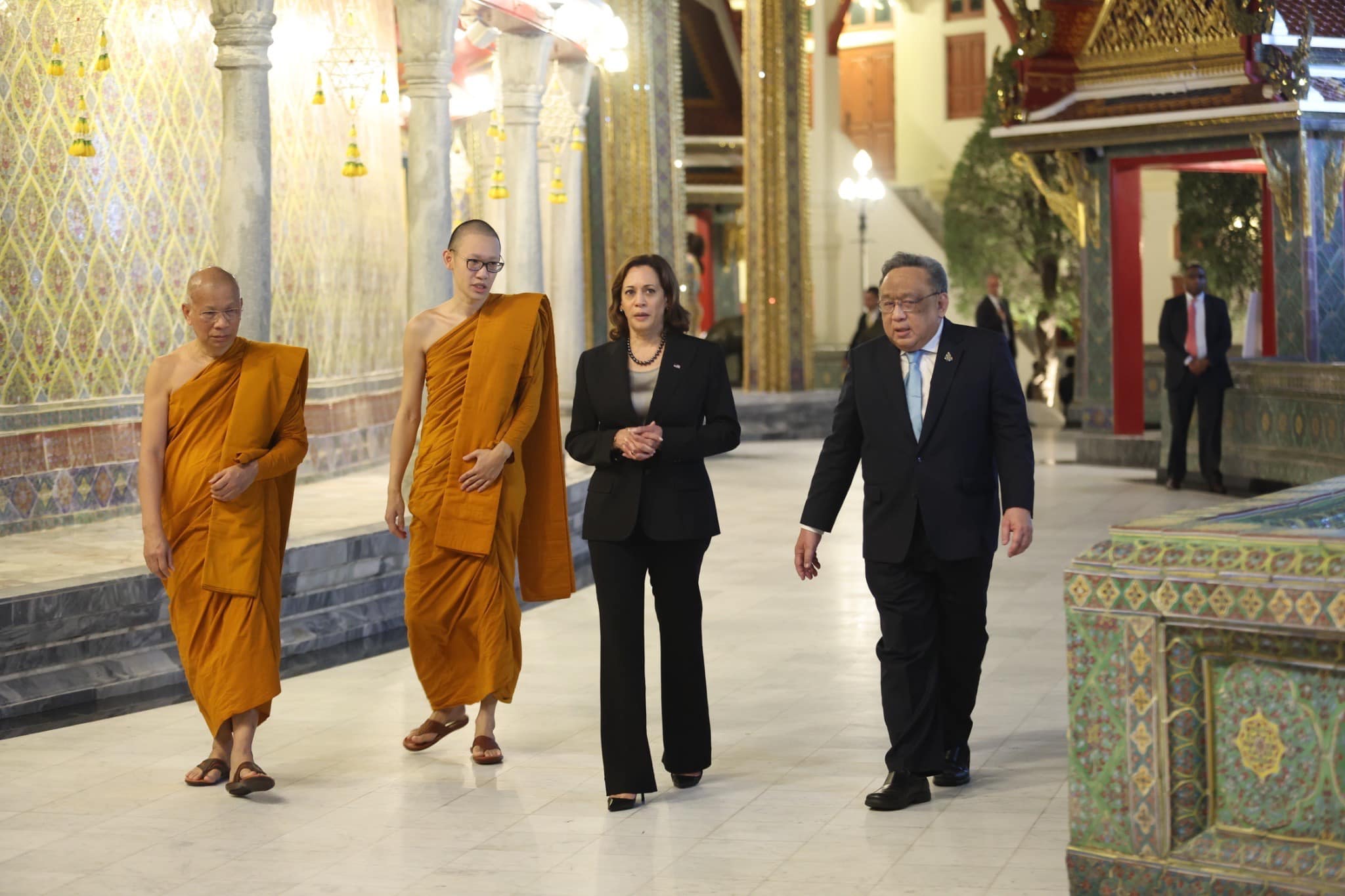 วันเสาร์ ที่ ๑๙ พฤศจิกายน ๒๕๖๕ เจ้าพระคุณ สมเด็จพระอริยวงศาคตญาณ สมเด็จพระสังฆราช สกลมหาสังฆปริณายก เสด็จลงพระอุโบสถ วัดราชบพิธสถิตมหาสีมาราม ประทานพระวโรกาสให้ นางกมลา ดี. แฮร์ริส รองประธานาธิบดีสหรัฐอเมริกา เฝ้าถวายสักการะและประทานพระอนุญาตให้เข้าชมศิลปกรรมวัดราชบพิธสถิตมหาสีมาราม