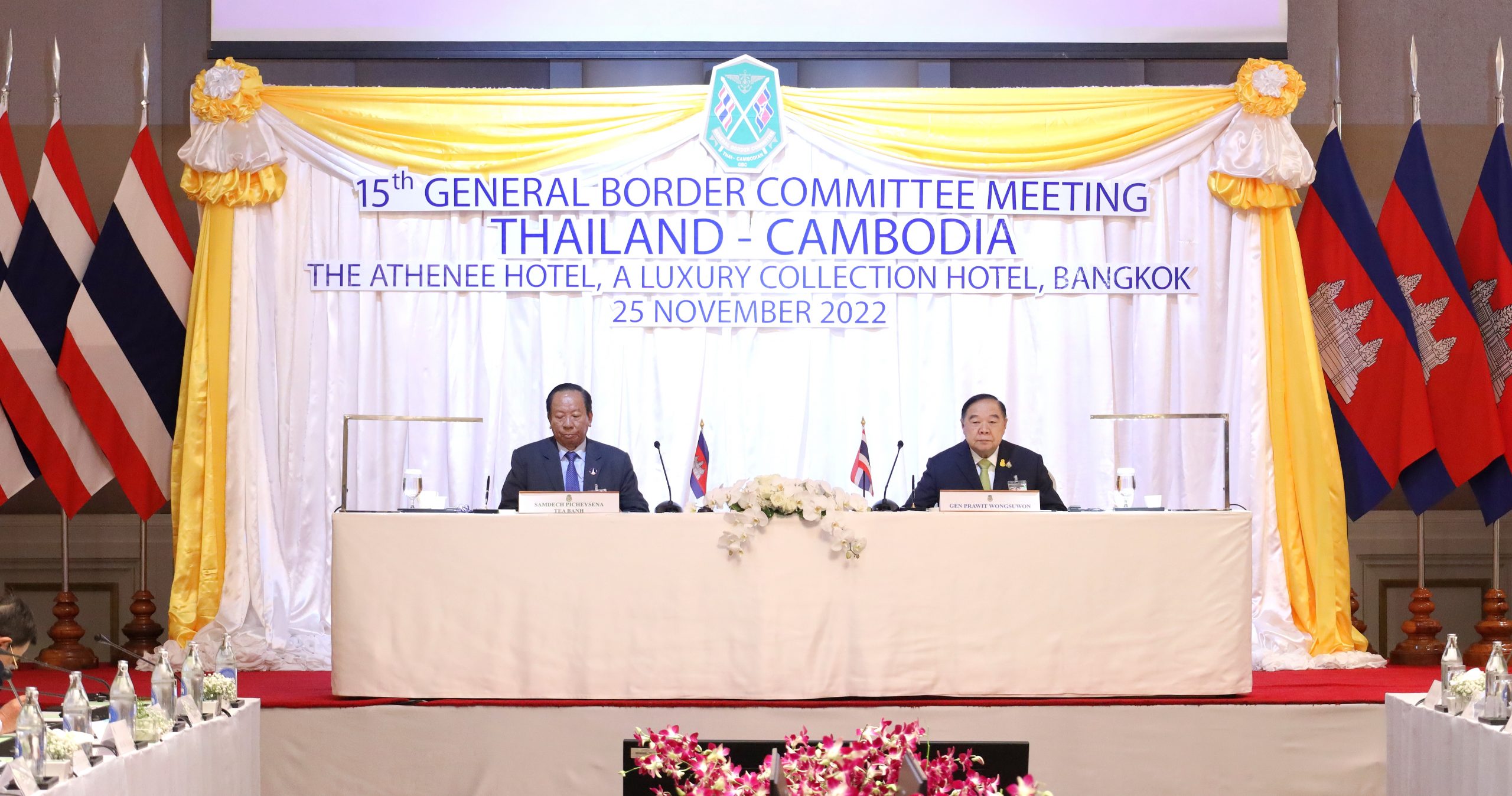 25 พฤศจิกายน 2565 เวลา 14.00 น. พลเอกประวิตร วงษ์สุวรรณ รองนายกรัฐมนตรี และพลเอก เตีย บันห์ รองนายกรัฐมนตรี และ รัฐมนตรีว่าการกระทรวงกลาโหมกัมพูชา ได้ร่วมการประชุมคณะกรรมการชายแดนทั่วไป (GBC ) ไทย – กัมพูชา ครั้งที่ 15 ณ โรงแรม ดิ แอทธินี กรุงเทพฯ โดยฝ่ายไทยเป็นเจ้าภาพจัดขึ้น