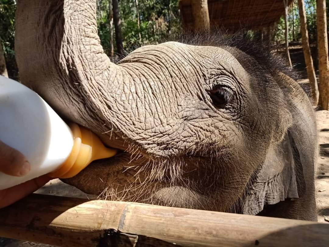 ขณะนั้นลูกช้างอายุประมาณ 2-3 เดือน เจ้าหน้าที่กรมอุทยานแห่งชาติฯ พบเมื่อวันที่ 27 เมษายน 2563 จึงดูแลระหว่างรอให้โขลงมารับแต่ไม่ได้พบกับโขลง จากนั้นจึงนำมาอนุบาลที่สถานีเพาะเลี้ยงสัตว์ป่าห้วยขาแข้ง จนกระทั่งวันที่ 13 พฤศจิกายน2563 จึงเคลื่อนย้ายมาดูแลและปรับพฤติกรรมเพื่อจะได้นำไปปล่อยคืนสู่ป่าตามธรรมชาติในพื้นที่เขตรักษาพันธุ์สัตว์ป่าดอยผาเมือง จังหวัดลำปาง โดยทำคอกอนุบาลบริเวณหน่วยพิทักษ์ป่าหัวทุ่ง ท้องที่อำเภอห้างฉัตร มีผู้ดูแลตลอด 24 ชั่วโมง