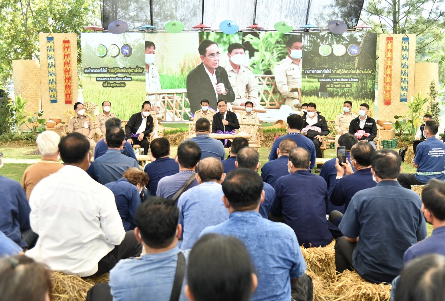พร้อมกันนี้ นายกรัฐมนตรีร่วมเสวนา “การปฏิวัติการทำนาสู่ความยั่งยืน” ร่วมกับ นายณัฏฐกิตติ์ ของทิพย์ อธิบดีกรมการข้าว และ น.ท.ดร.ภณ ทัพพินท์กร นายกสมาคมพัฒนาเศรษฐกิจเกษตรรักษ์โลก โดยนายกรัฐมนตรีย้ำว่ารัฐบาลมีความมุ่งหวังให้ภาคการเกษตรมีผลิตผลที่ดีมีคุณภาพ สินค้าเกษตรมีมูลค่าสูงขึ้น เกษตรกรมีรายได้ที่เพียงพอ มีคุณภาพชีวิตที่ดีอย่างยั่งยืน ดีใจที่เห็นความก้าวหน้าจากการดำเนินงานตามนโยบายของรัฐบาล