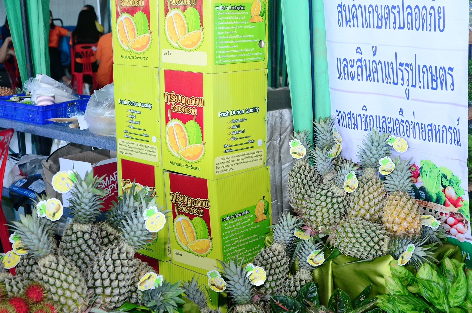 ได้แก่ ทุเรียน จำนวน 10,000 ตัน เพื่อส่งออกต่างประเทศ แบ่งเป็น ทุเรียนแช่แข็ง 8,000 ตัน และทุเรียนผลสด 2,000 ตัน มังคุด จำนวน 100 ตัน เพื่อจำหน่ายในประเทศ และเงาะ จำนวน 100 ตัน เพื่อจำหน่ายในประเทศ