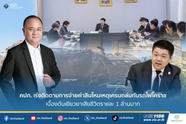 ประกันภัยJanuary 16, 2026<January 16, 2026 คปภ. เร่งติดตามการจ่ายค่าสินไหมเหตุเครนถล่มทับรถไฟโคราช เบื้องต้นเยียวยาเสียชีวิตรายละ 1 ล้านบาท