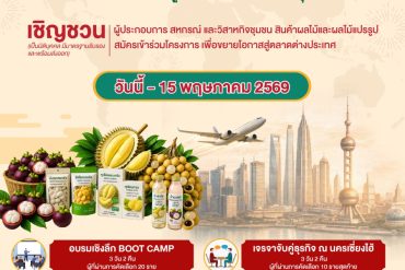 พาณิชย์April 29, 2026<April 29, 2026 พาณิชย์ดันผลไม้ไทย รุกตลาดจีน ภายใต้โครงการยกระดับผู้ประกอบการรุกตลาด FTA คัดสุดยอด SMEs ลุยเซี่ยงไฮ้ จับคู่ธุรกิจ ปูทางสู่ตลาดจีน