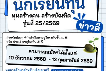 ประชาสัมพันธ์December 25, 2025<December 25, 2025 ประตูสู่โอกาสทางการศึกษา “มูลนิธิดำรงชัยธรรม” เปิดรับสมัครนักเรียนทุน รุ่นที่ 25/2569