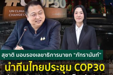 November 5, 2025<November 5, 2025 สุชาติ มอบรองเลขาธิการนายก “ภัทรานันท์” นำทีมไทยประชุม COP30 ที่บราซิล ร่วมผลักดัน 5 ประเด็นสำคัญรับมือโลกเดือด พร้อมประชาคมโลก